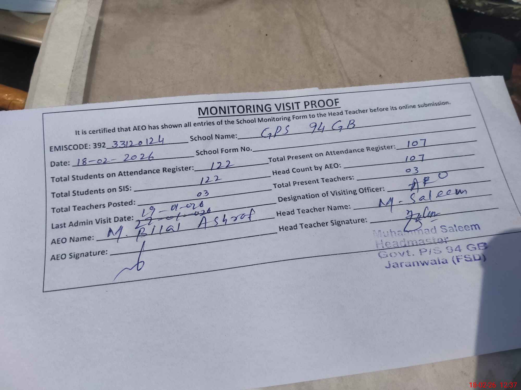 | EMIS Code: 33120124 | Name of School: GPS CHAK 94 GB | |||