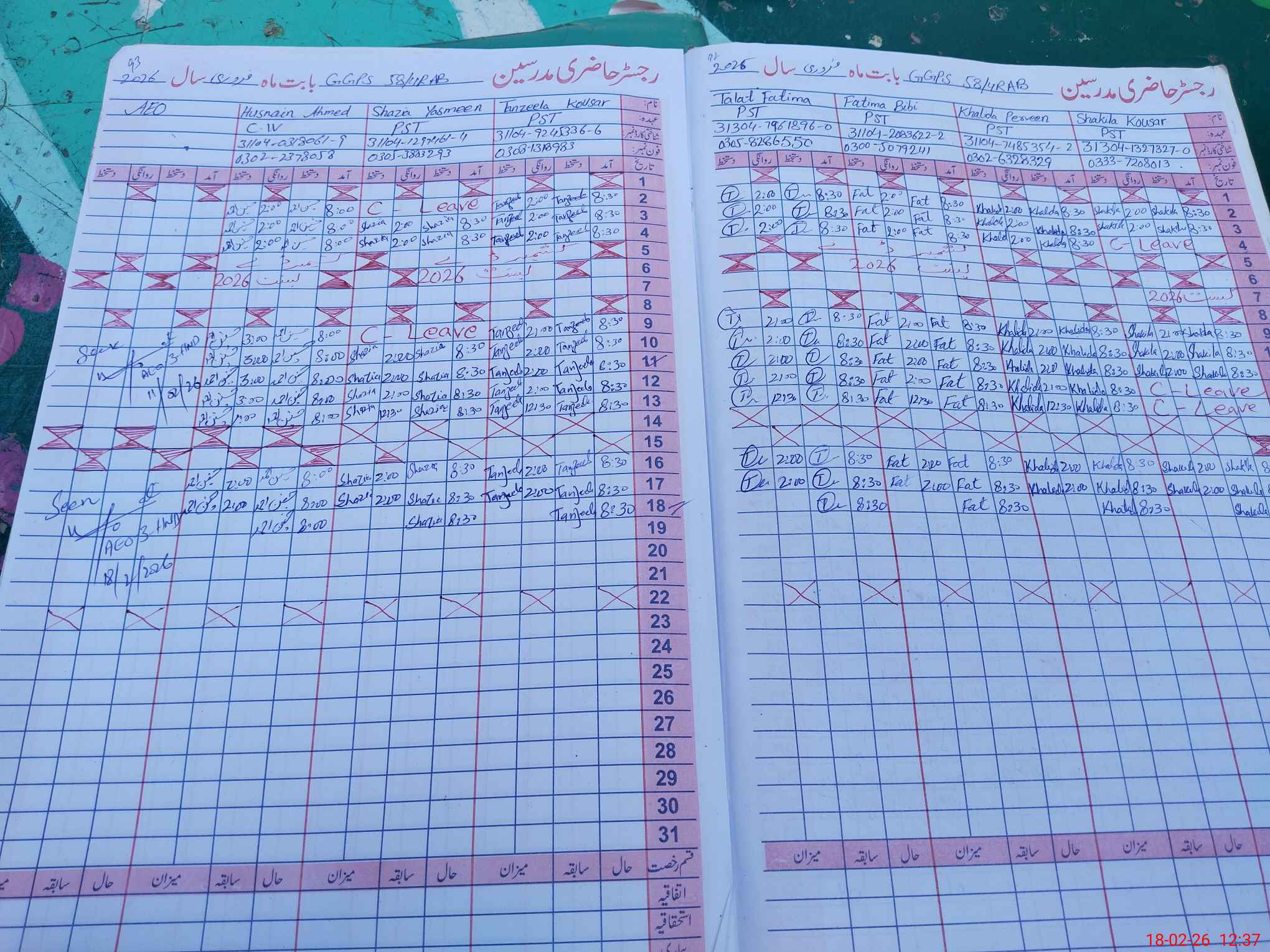 | CNIC | Full Name | Designation | R/C | Absence During Last Calender Month |