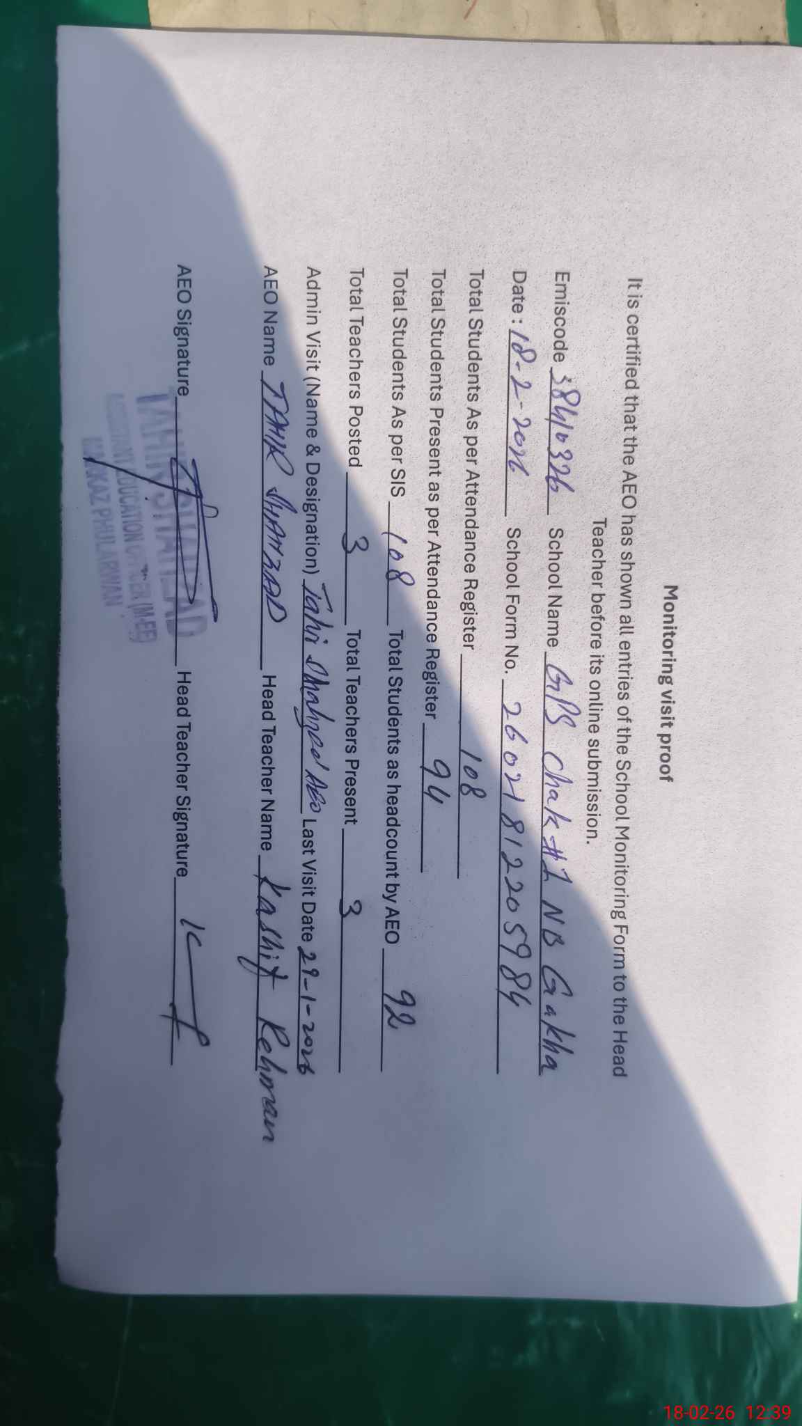 | EMIS Code: 38410326 | Name of School: GPS CHAK NO.1 NB GAKHRA | |||