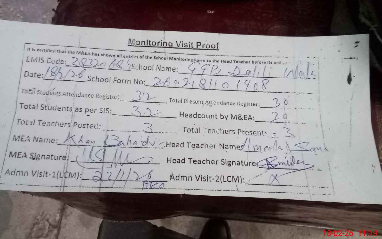 | EMIS Code: 38320684 | Name of School: GGPS DALILI WALA | |||