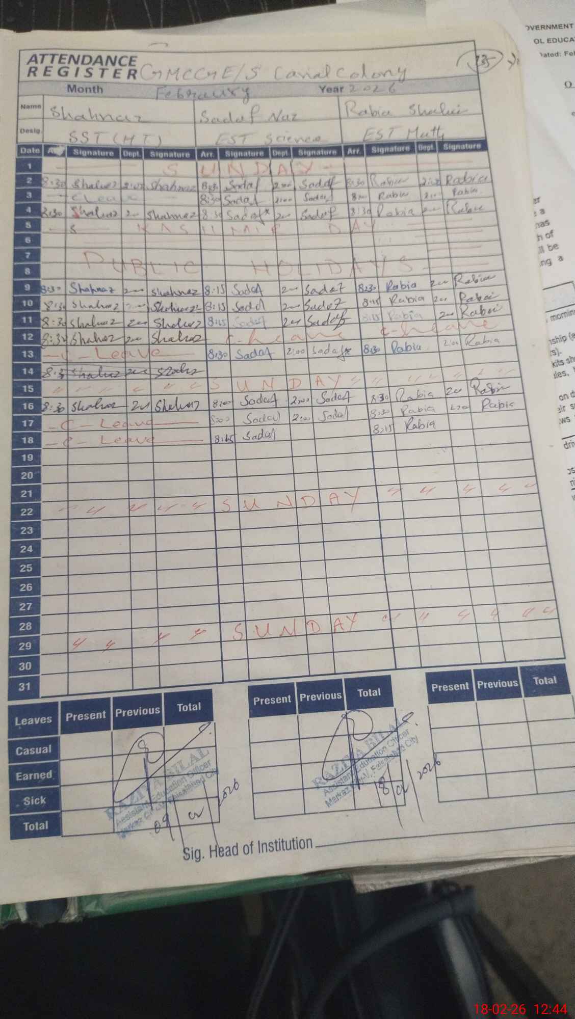 | 33**** | Ay**** Sa**** | ESE Science | Contract | 2 | 0 | 0 | 0 | 0 | 0 | 0 | 0 | 2 | Casual |