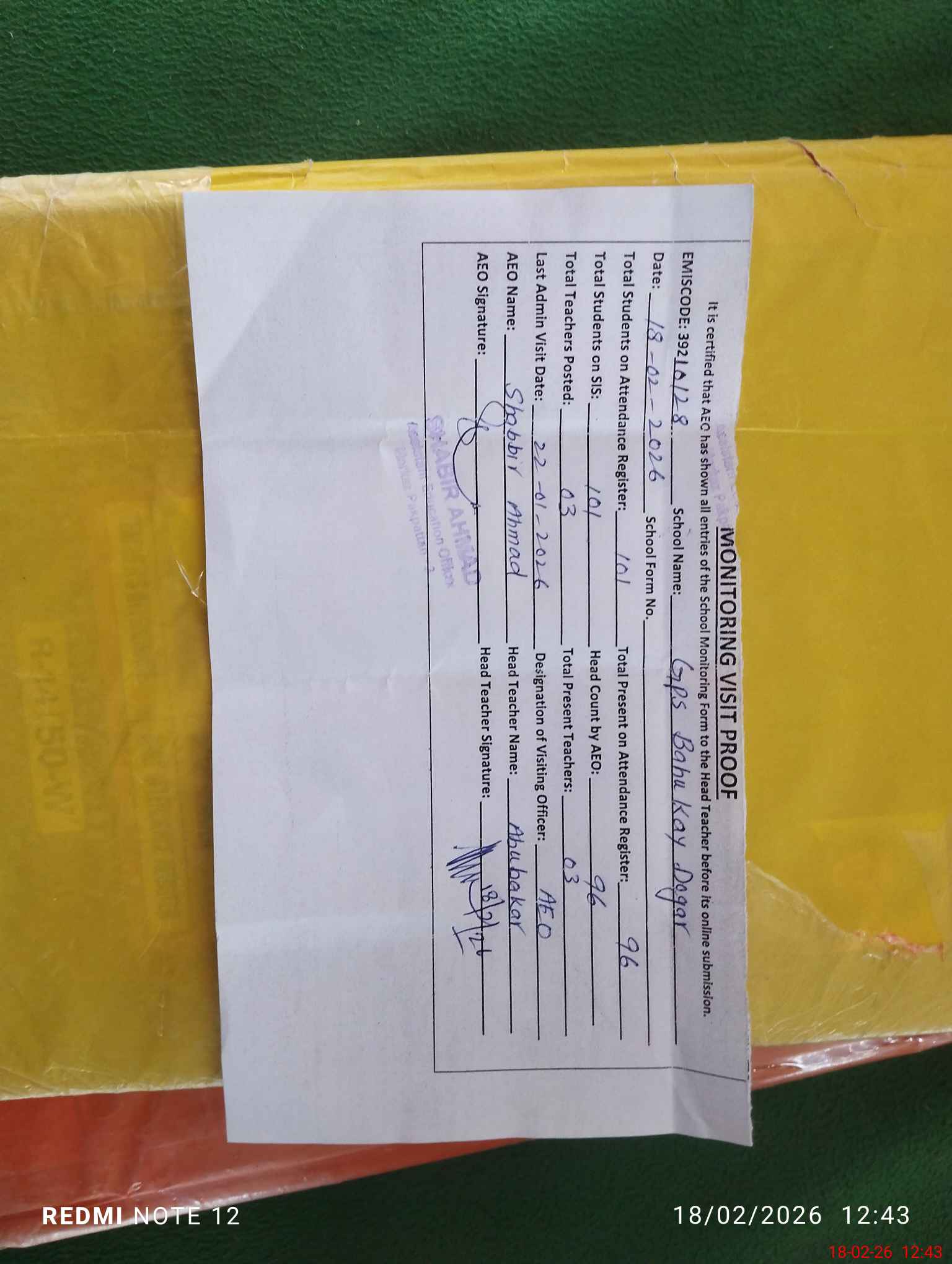 | EMIS Code: 39210128 | Name of School: GPS BAHU KEY DOGAR | |||