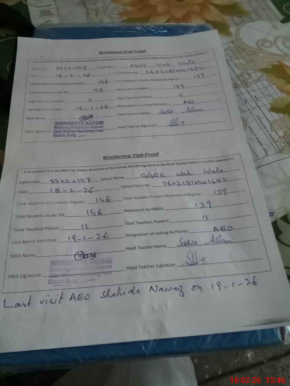 | EMIS Code: 33220147 | Name of School: GGES WAH WALA | |||