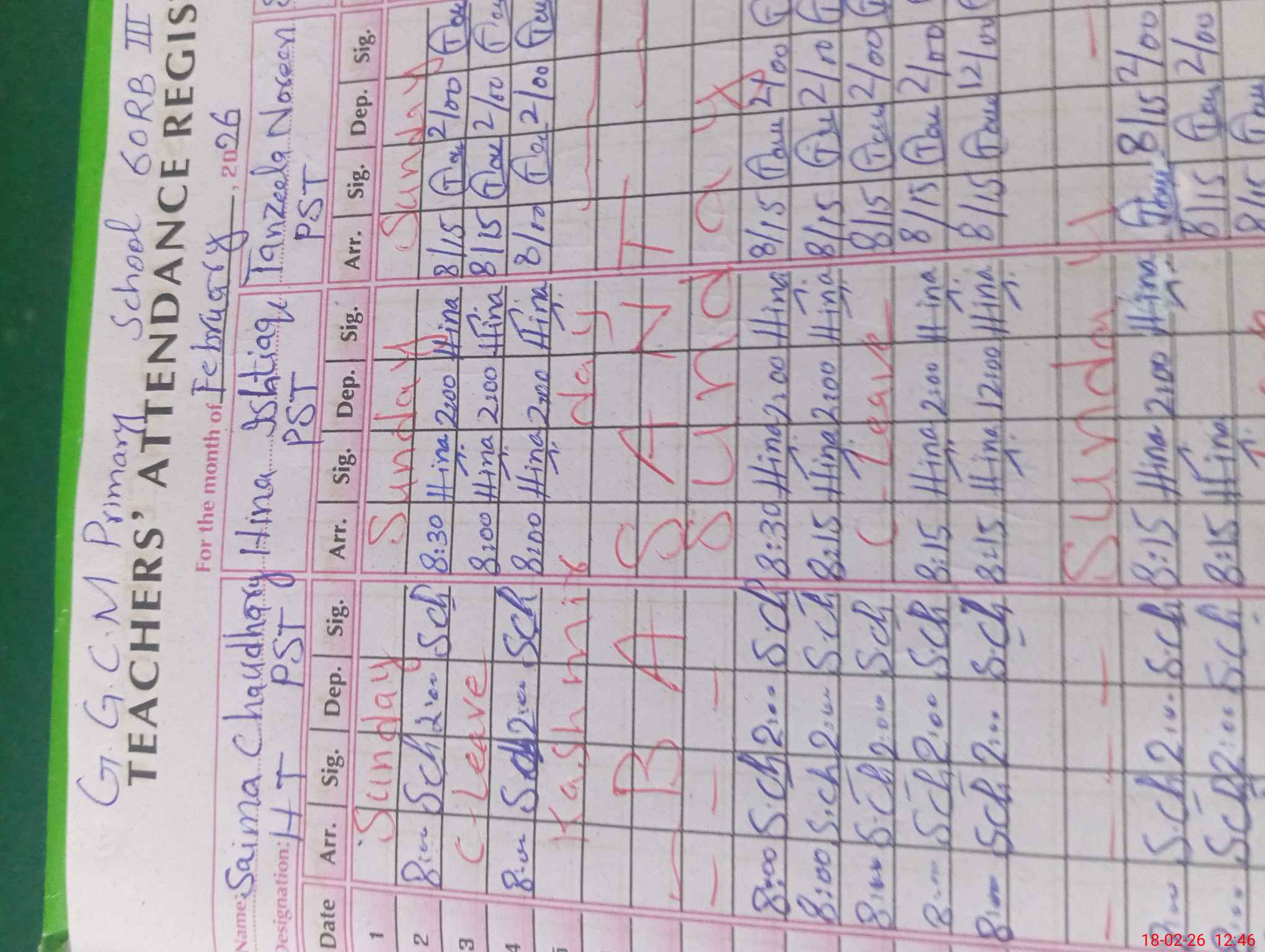 | Name: SA**** CH**** Designation: (School Headmaster's/Headmistress's) PST Phone/Cell Number: 03**** |
