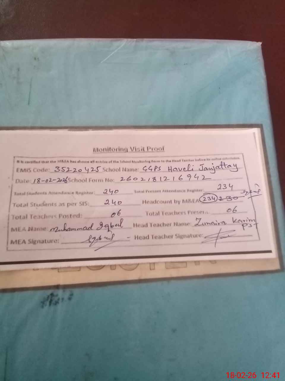 | EMIS Code: 35220425 | Name of School: GGPS HAVELI JANJATAY | |||