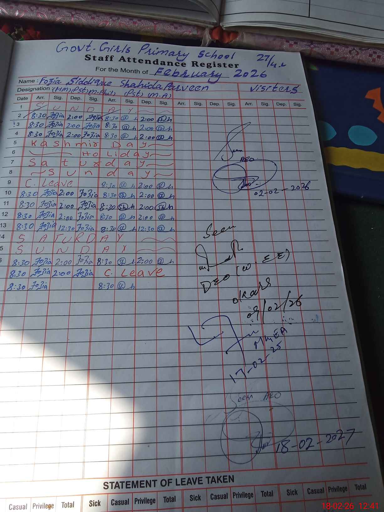 | Name: Fo**** Sa**** Designation: (School Headmaster's/Headmistress's) PST Phone/Cell Number: 03**** |
