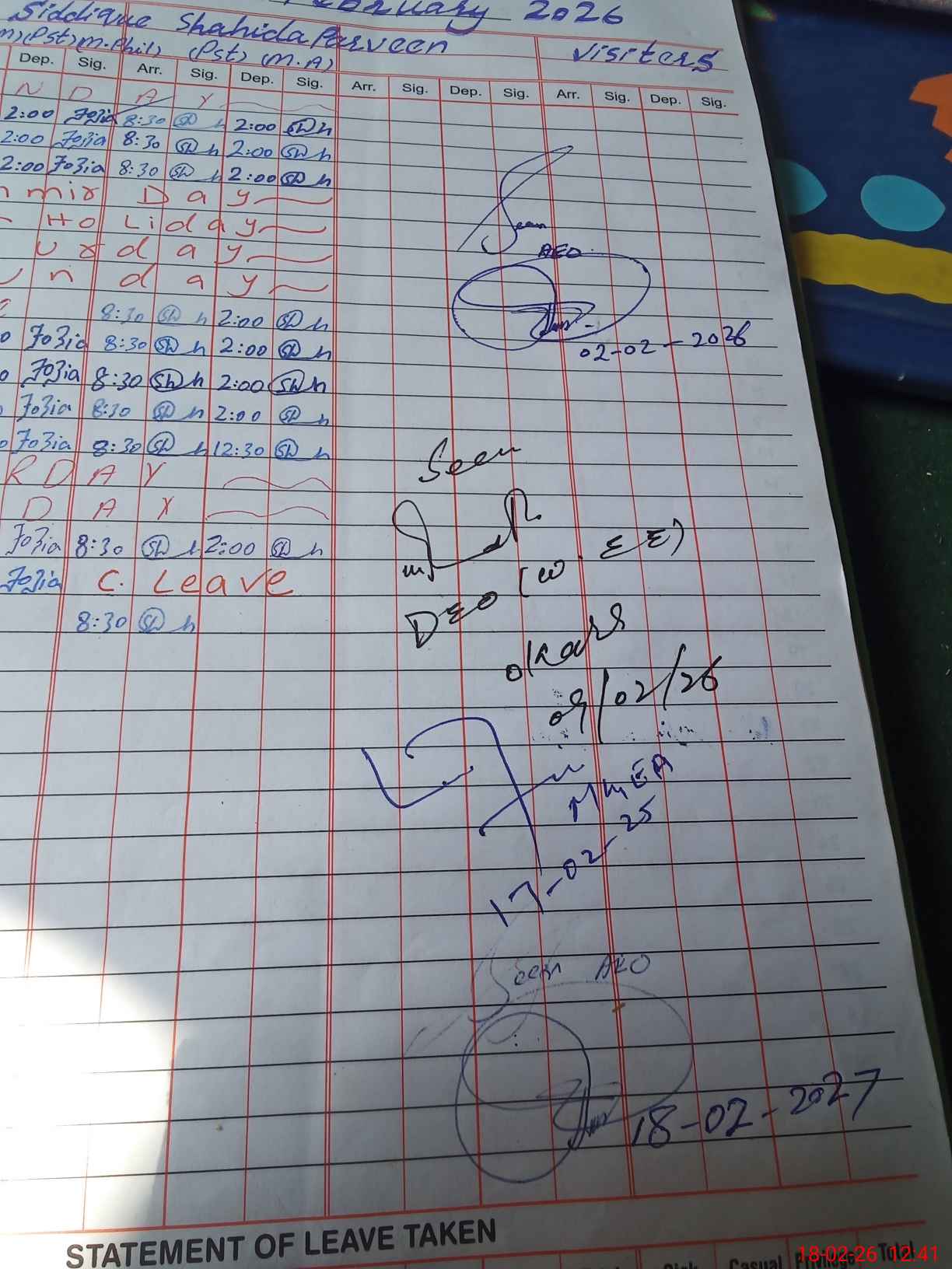 | Sr.No. | Visit Date | Designation | ||