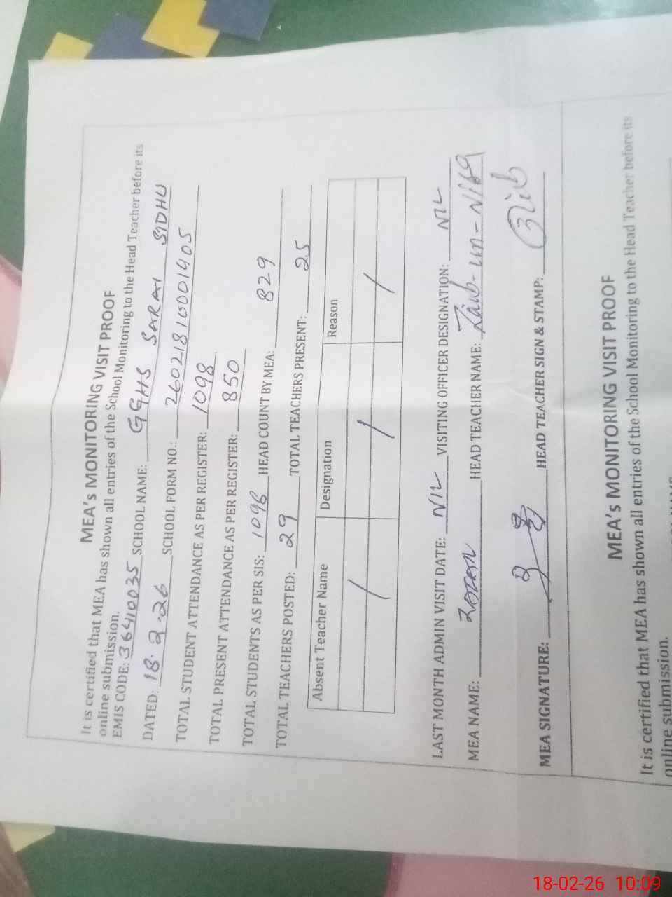 | EMIS Code: 36410035 | Name of School: GGHS SARAI SIDHU | |||