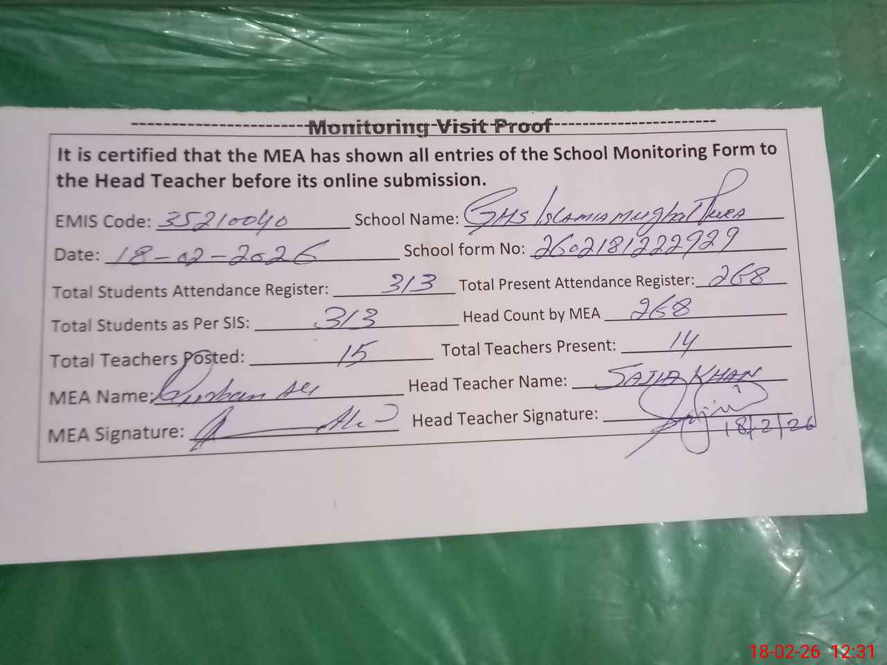 | EMIS Code: 35210040 | Name of School: GHS ISLAMIA MUGHAL PURA | |||