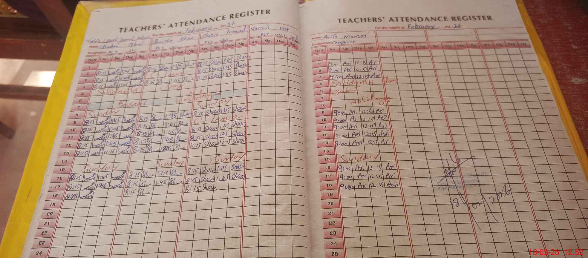 | CNIC | Full Name | Designation | R/C | Absence During Last Calender Month |