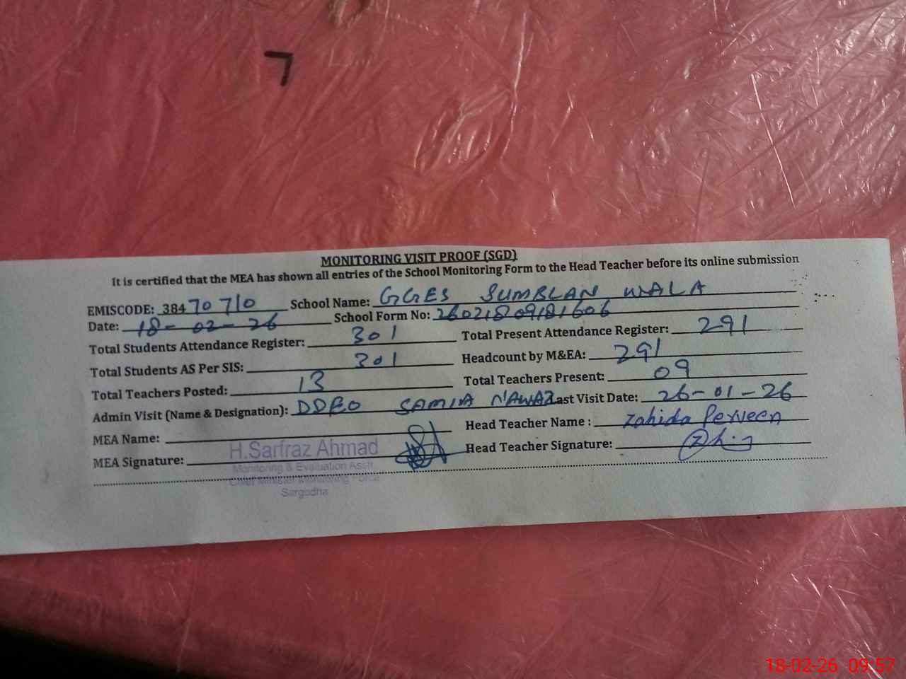 | EMIS Code: 38470710 | Name of School: GGES SUMBLAN WALA | |||