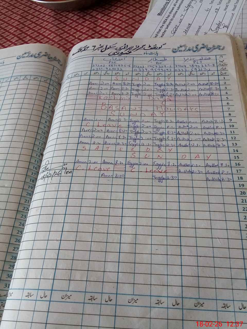 | Name: An**** Za**** Designation: (School Headmaster's/Headmistress's) PST Phone/Cell Number: 03**** |