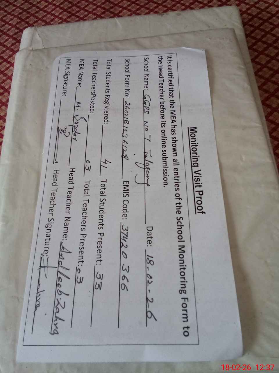 | EMIS Code: 37420366 | Name of School: GGPS TALAGANG NO. 7 | |||