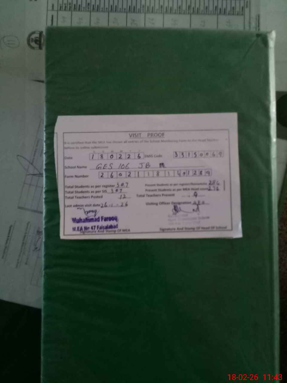 | Attendance Register | Head Teacher | MEA with School | Visit Proof |