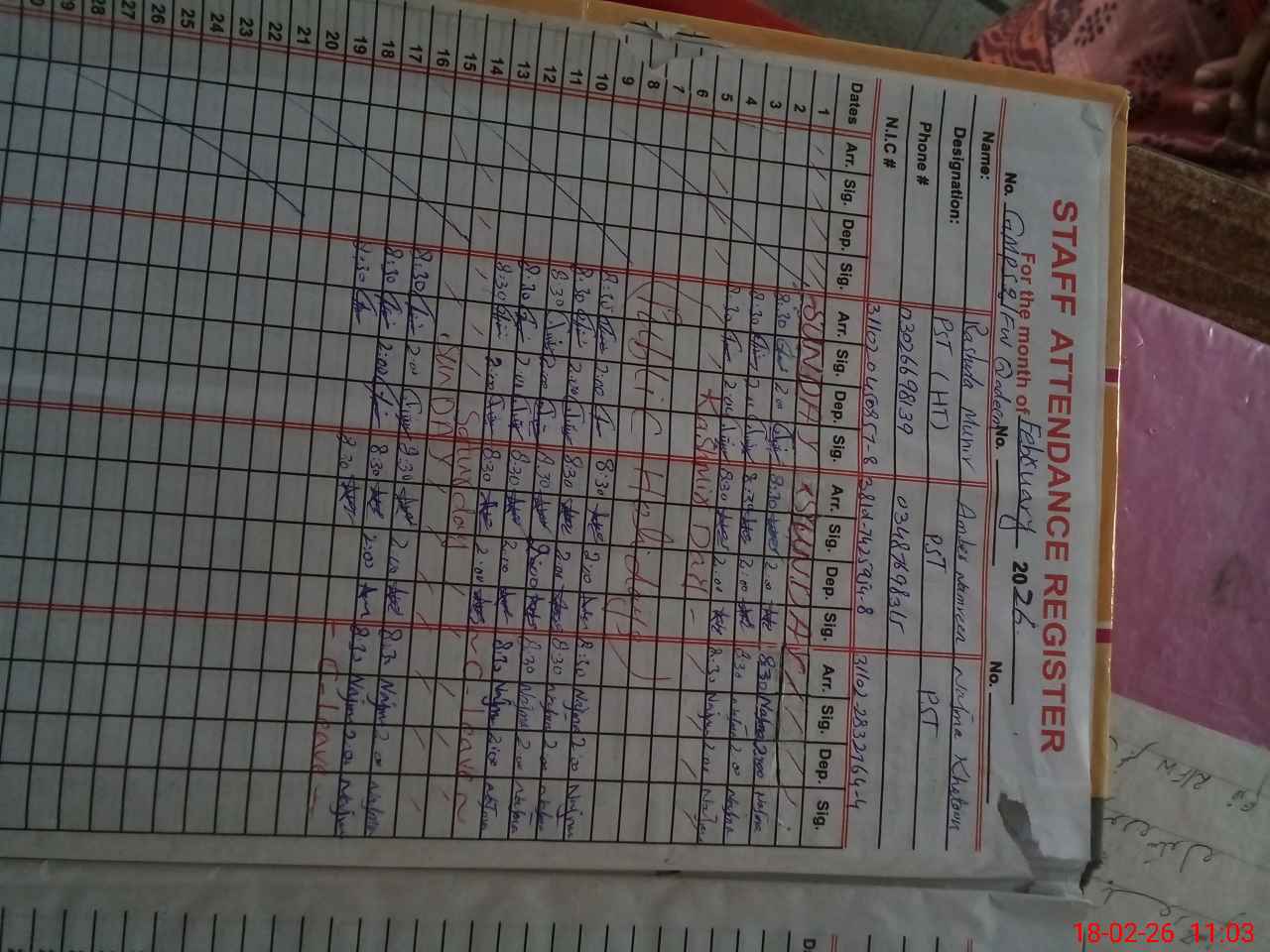 | Name: Ra**** Mu**** Designation: (School Headmaster's/Headmistress's) PST Phone/Cell Number: 03**** |