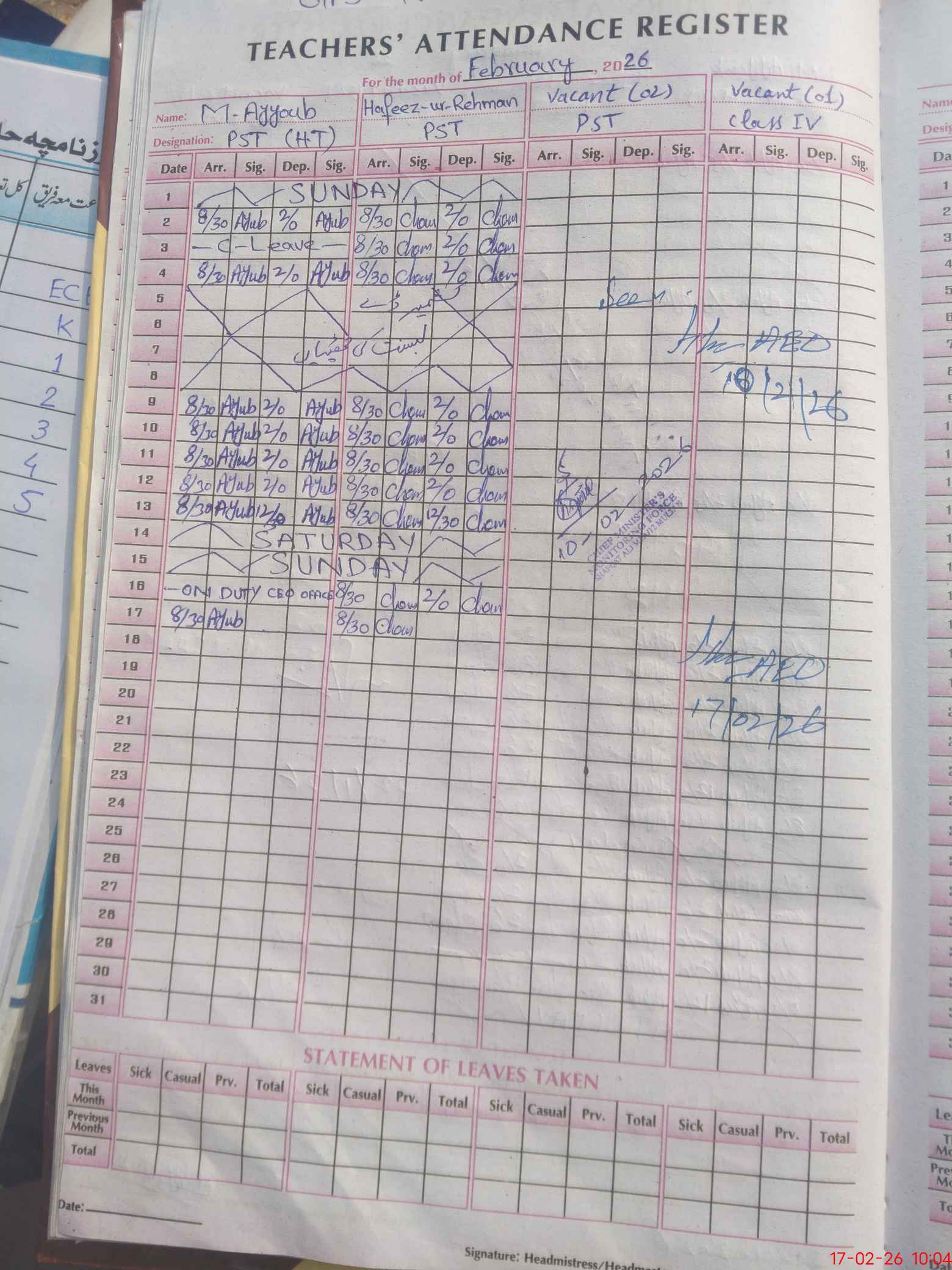 | Name: M.**** Designation: (School Headmaster's/Headmistress's) PST Phone/Cell Number: 03**** |