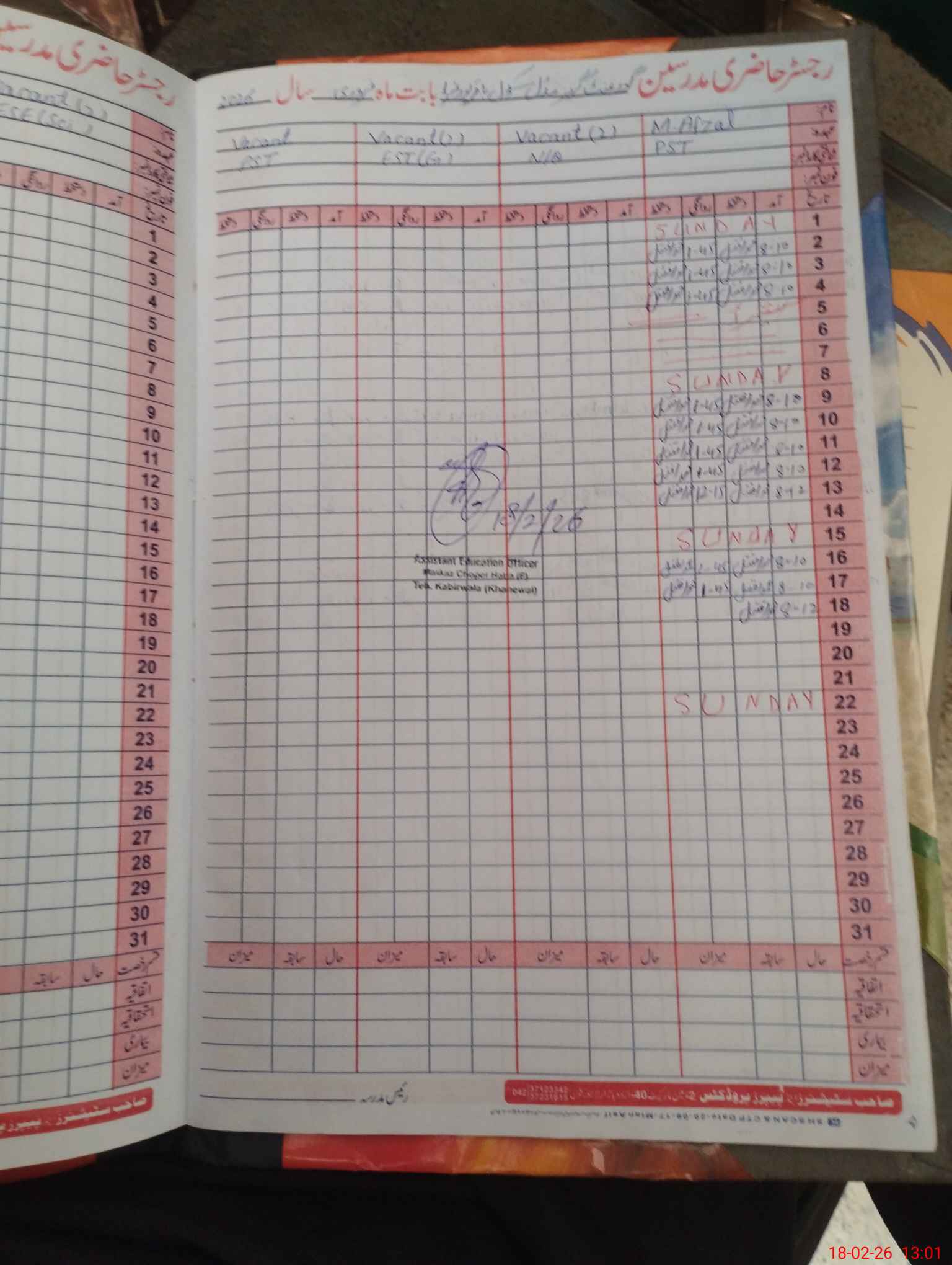 | Name: Ir**** Sh**** Designation: (School Headmaster's/Headmistress's) Sst Phone/Cell Number: 03**** |