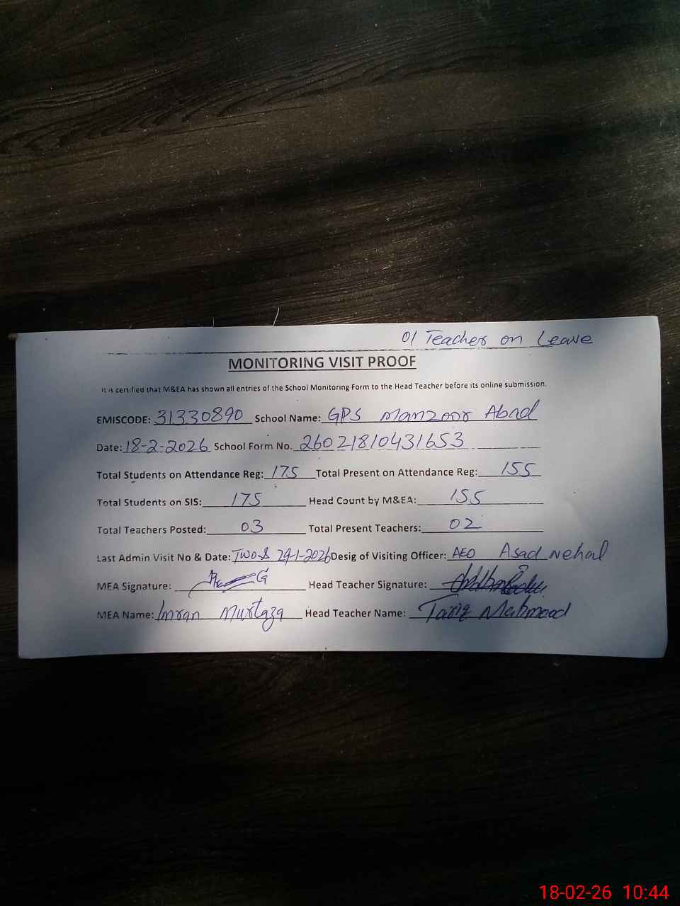 | EMIS Code: 31330890 | Name of School: GPS MANZOOR ABAD | |||