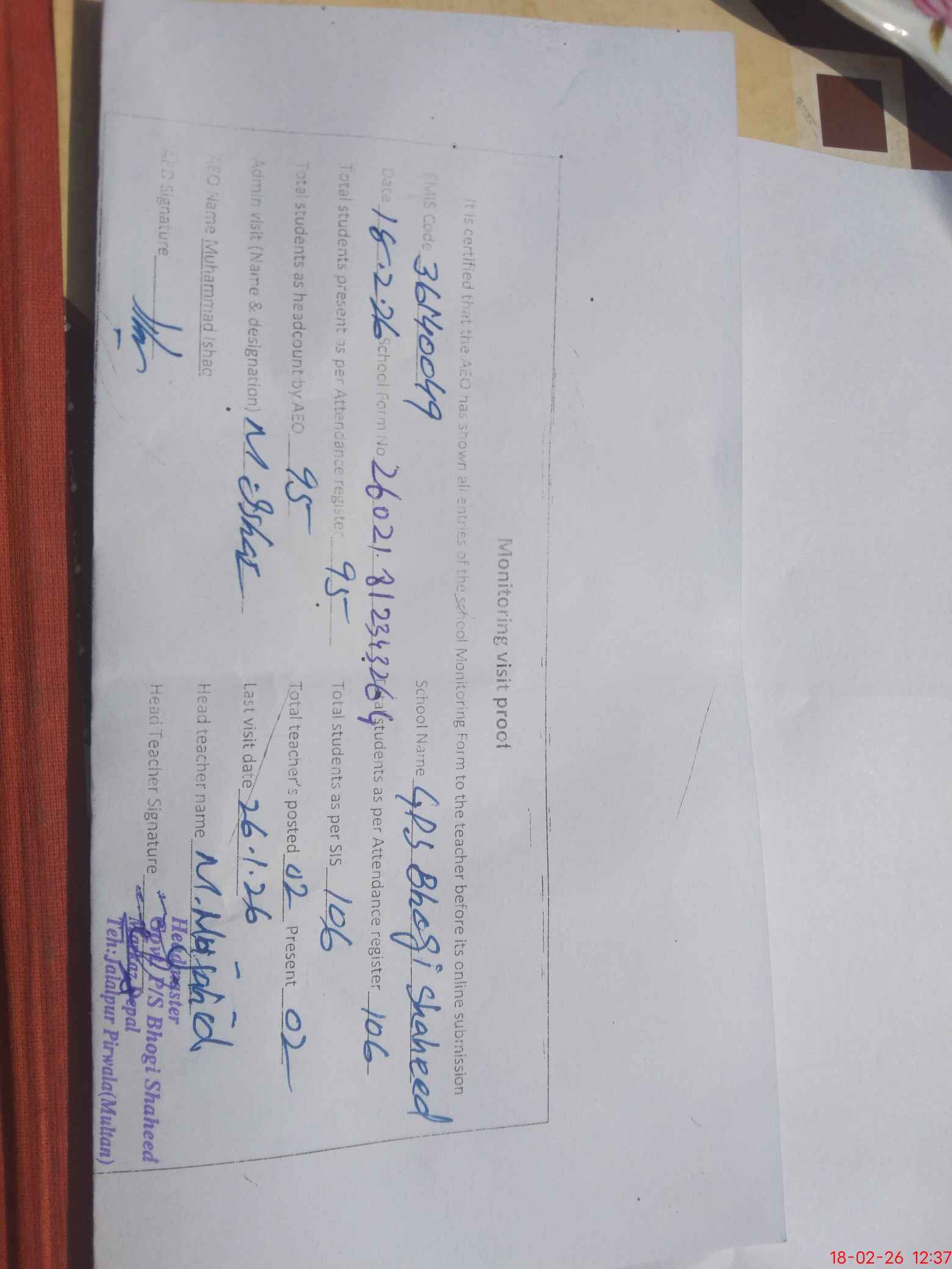 | EMIS Code: 36140049 | Name of School: GPS BHOGI SHAHEED JALALPUR | |||