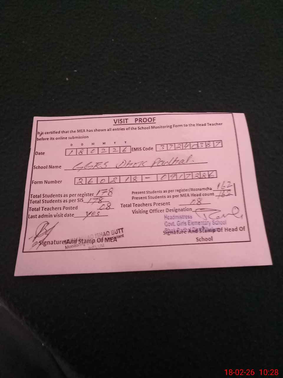 | EMIS Code: 37240387 | Name of School: GGES DHOK PADHAL | |||