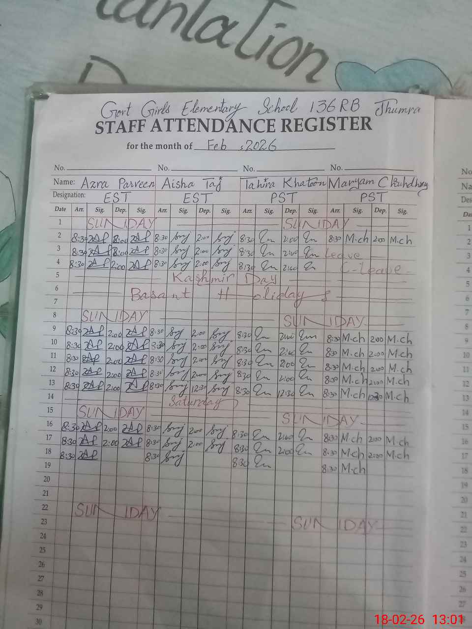 | Monitoring Date: 18-02-2026 | Start Time: 18-02-2026 12:30 PM | End Time: 18-02-2026 01:08 PM | Name of MEA: MU**** SH**** MU**** | |