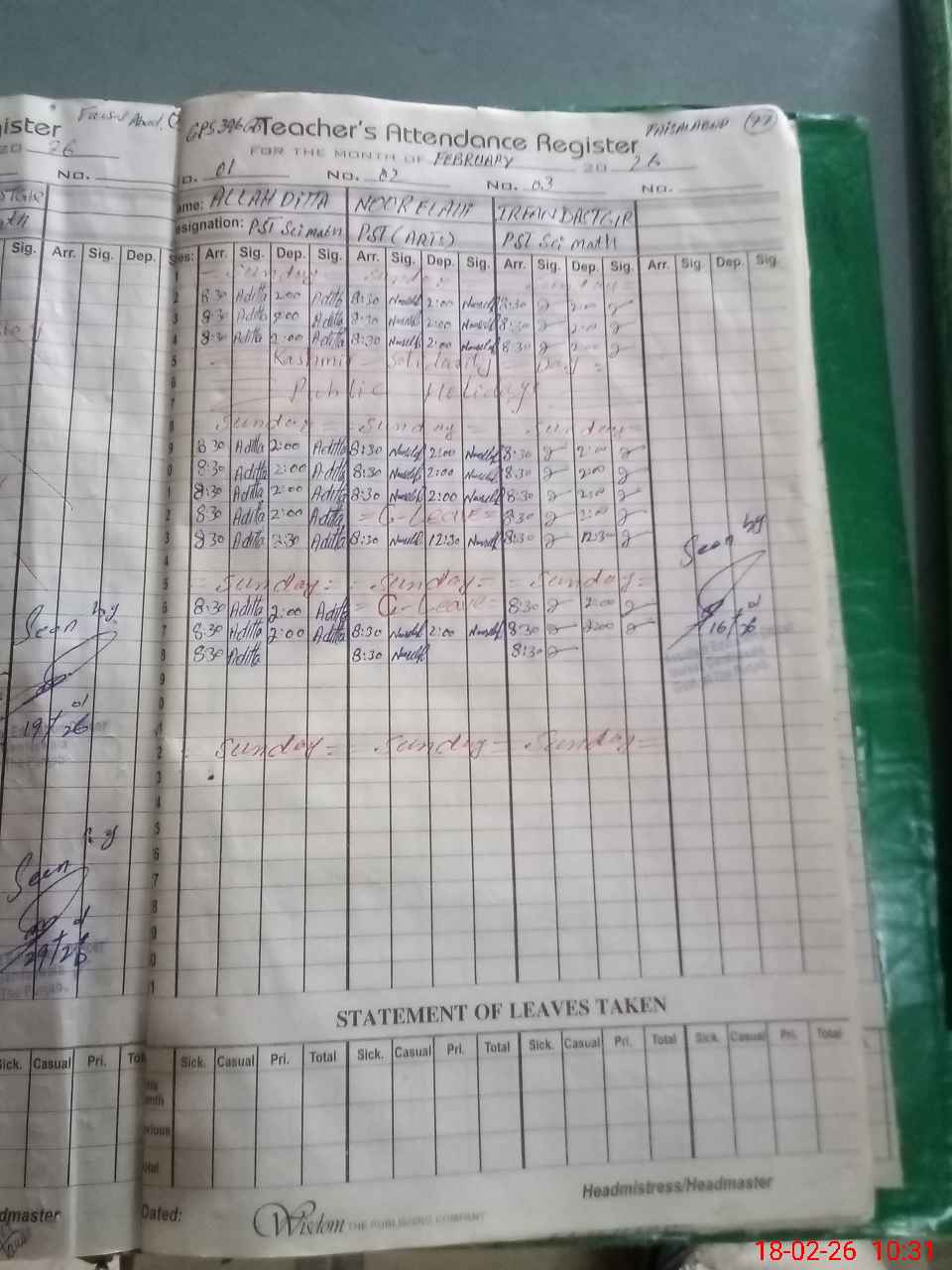 | Name: AL**** DI**** Designation: (School Headmaster's/Headmistress's) PST Phone/Cell Number: 03**** |