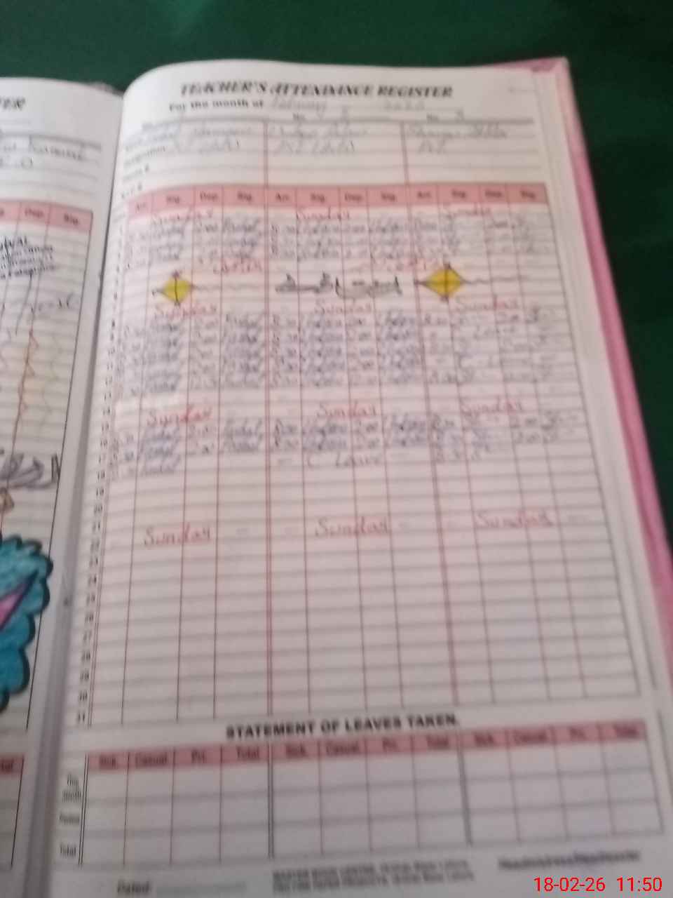 | Leave | Duty | Absent | Maternity | Medical | Ex- Pak |