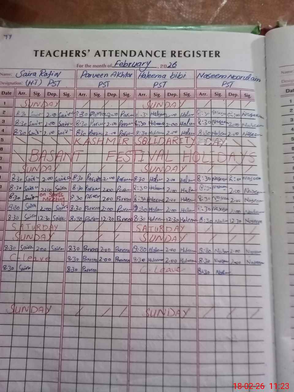 | Name: SA**** RA**** Designation: (School Headmaster's/Headmistress's) PST Phone/Cell Number: 03**** |