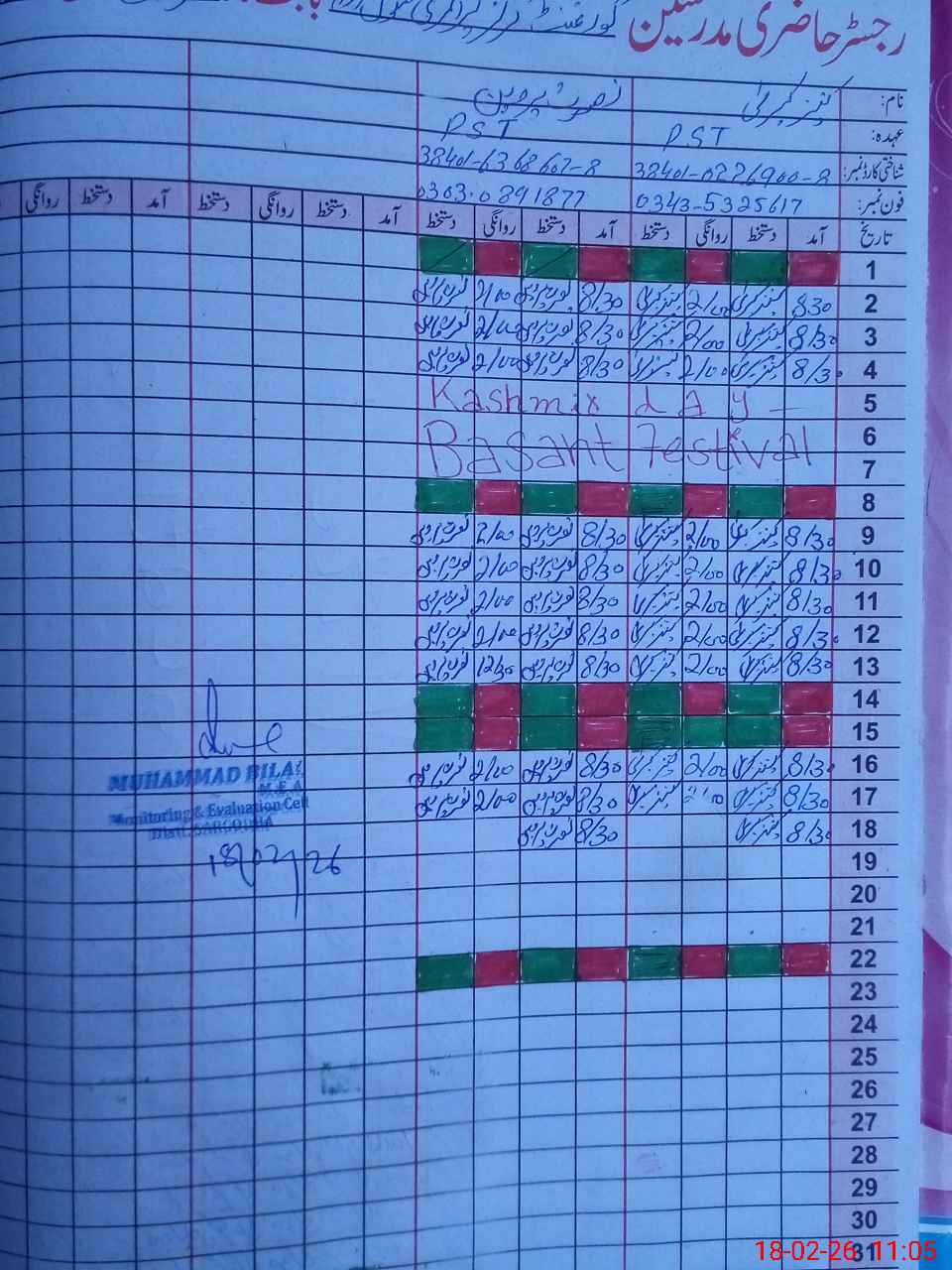 | Name: KA**** KU**** Designation: (School Headmaster's/Headmistress's) PST Phone/Cell Number: 03**** |