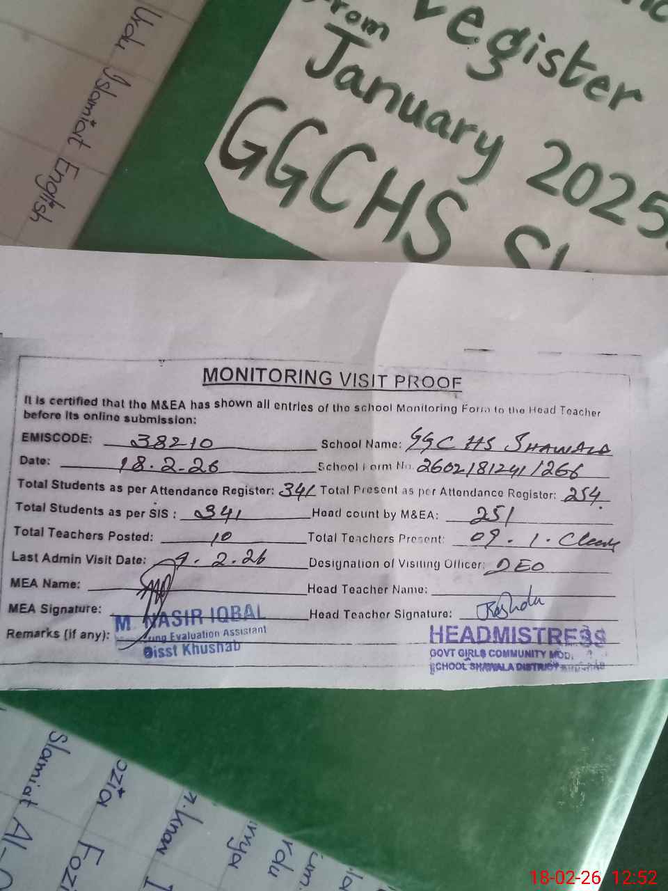| EMIS Code: 38210541 | Name of School: GGCHS SHAWALA | |||