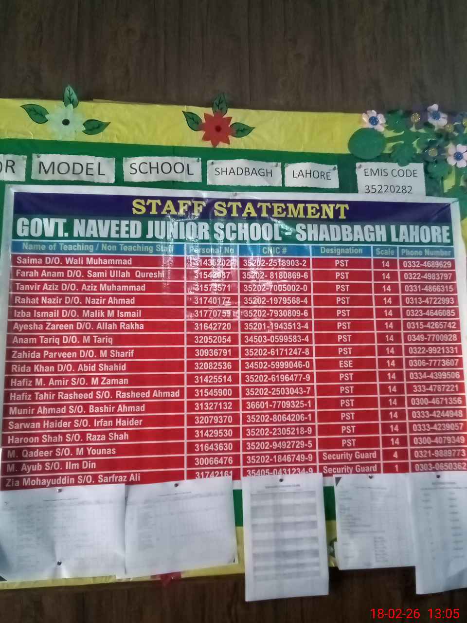 | EMIS Code: 35220282 | Name of School: GPS NAVEED JUNIOR MODEL AMIR ROAD | |||