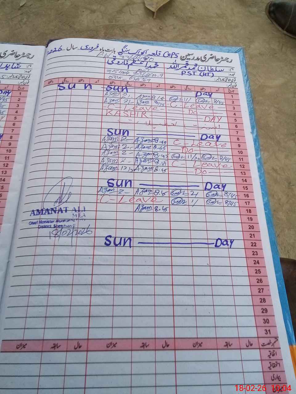 | Name: SU**** MU**** Designation: (School Headmaster's/Headmistress's) PST Phone/Cell Number: 03**** |