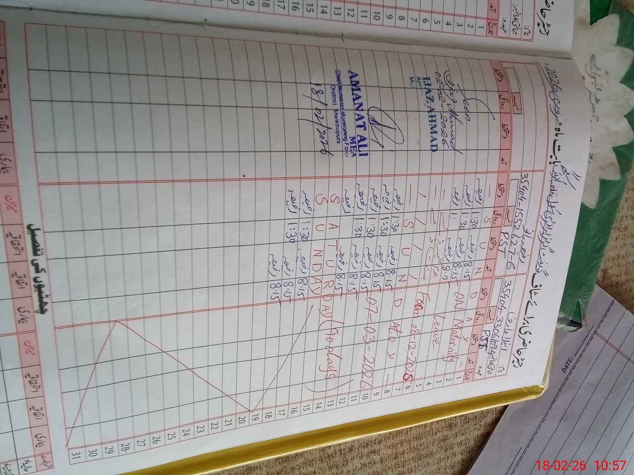 | CNIC | Full Name | Designation | R/C | Absence During Last Calender Month |