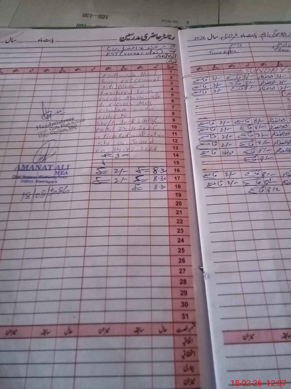 | Attendance Register | Head Teacher | MEA with School | Visit Proof |