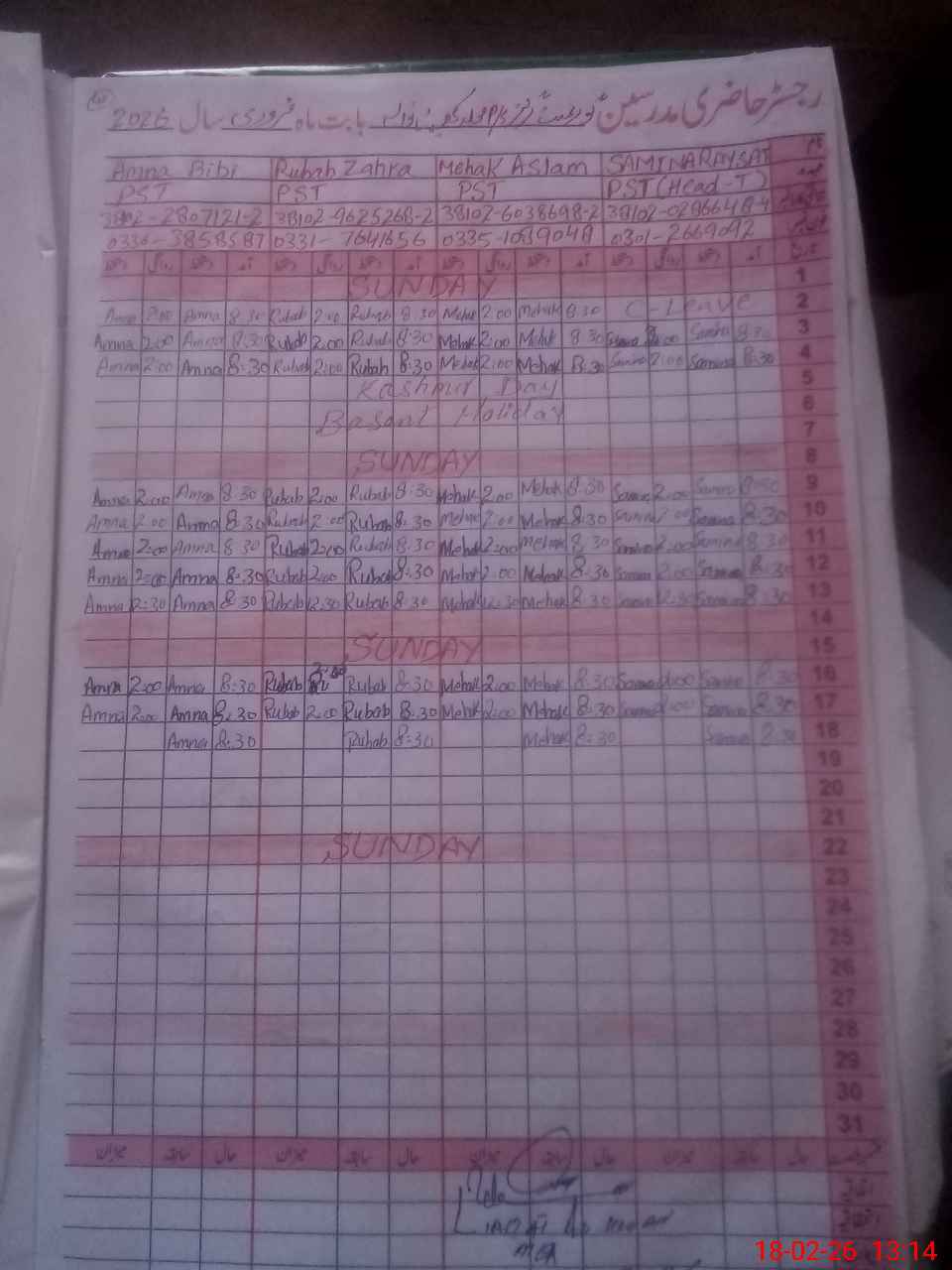 | 38**** | Sa**** Gu**** | PST Science/Maths | Regular | 0 | 0 | 0 | 0 | 0 | 0 | 0 | 0 | 0 | Maternity |