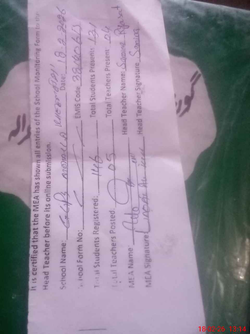| Certified that this School was Inspected by the Undersigned MEA/DMO Today and the Information Stated Above is as Per Record. | |||||
