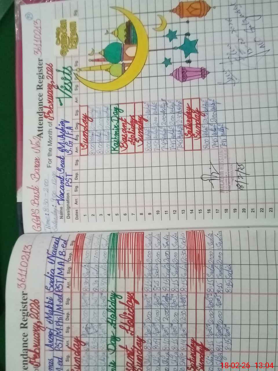 | No. of Students Present - Female | 0 | 0 | 28 | 20 | 17 | 30 | 22 | 148 | ||||||||
