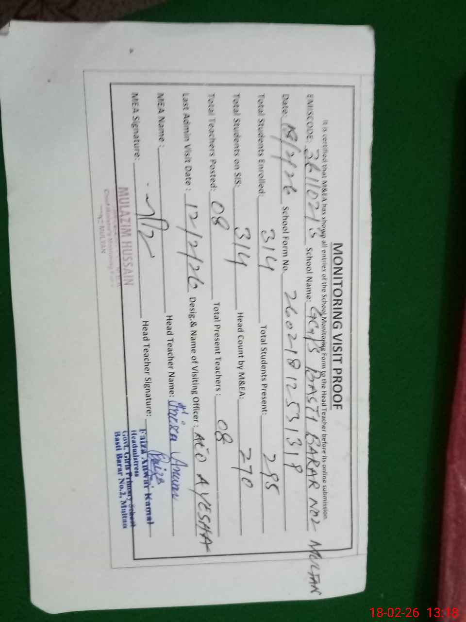 | Certified that this School was Inspected by the Undersigned MEA/DMO Today and the Information Stated Above is as Per Record. | |||||