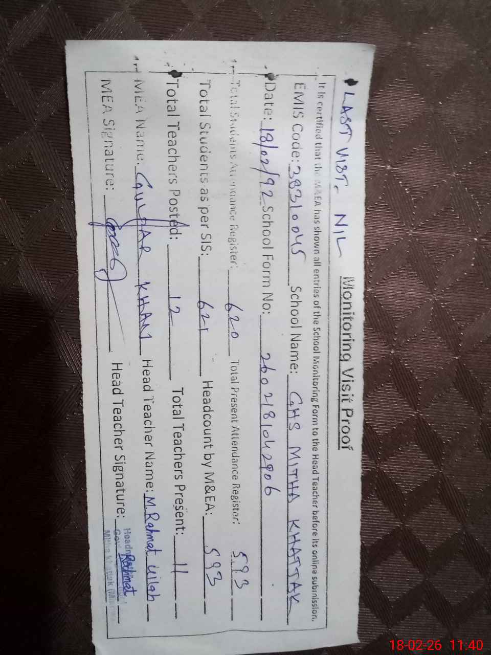 | EMIS Code: 38310045 | Name of School: GHS MITHA KHATAK | |||