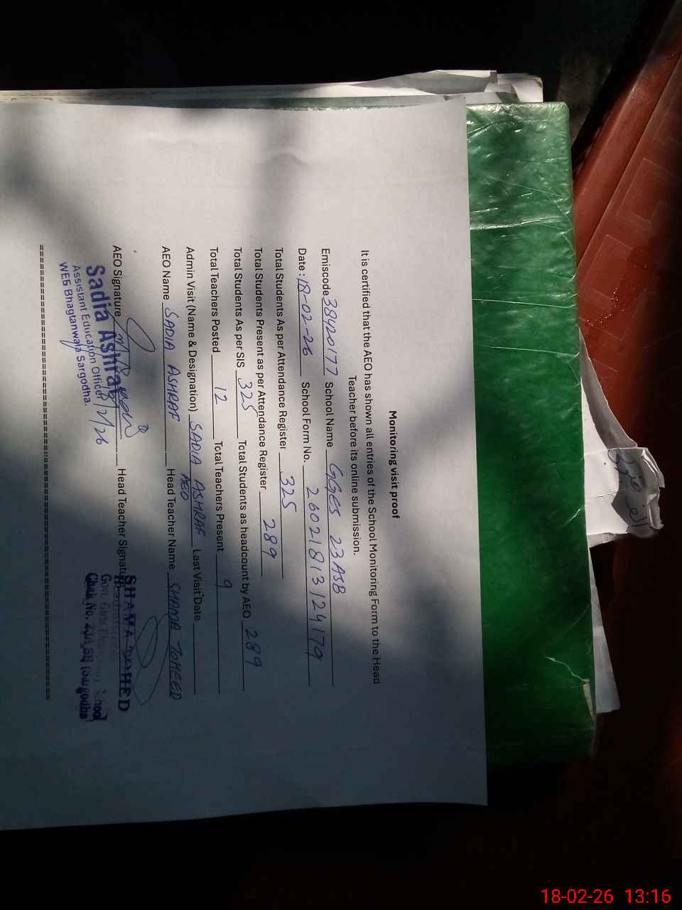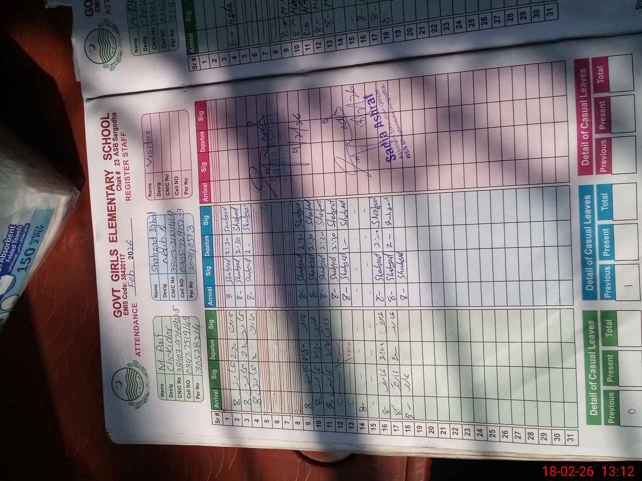 | EMIS Code: 38420177 | Name of School: GGES CHAK NO.23 ASB | |||