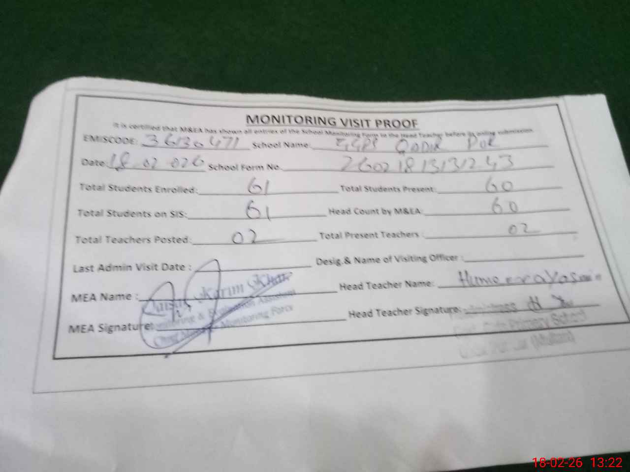 | EMIS Code: 36130471 | Name of School: GGPS QADIR PUR LAR MULTAN | |||