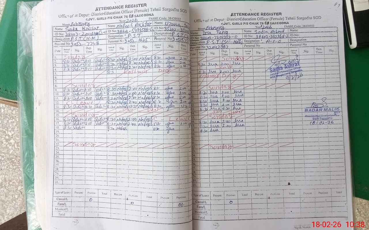 | Name: SA**** KA**** Designation: (School Headmaster's/Headmistress's) PST Phone/Cell Number: 03**** |