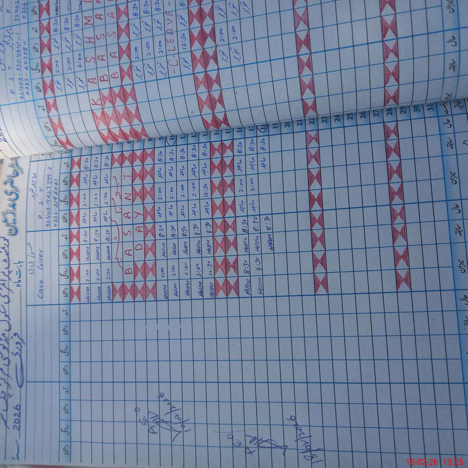 | Leave | Duty | Absent | Maternity | Medical | Ex- Pak |