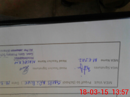 | Attendance Register | Head Teacher | MEA with School | Visit Proof |