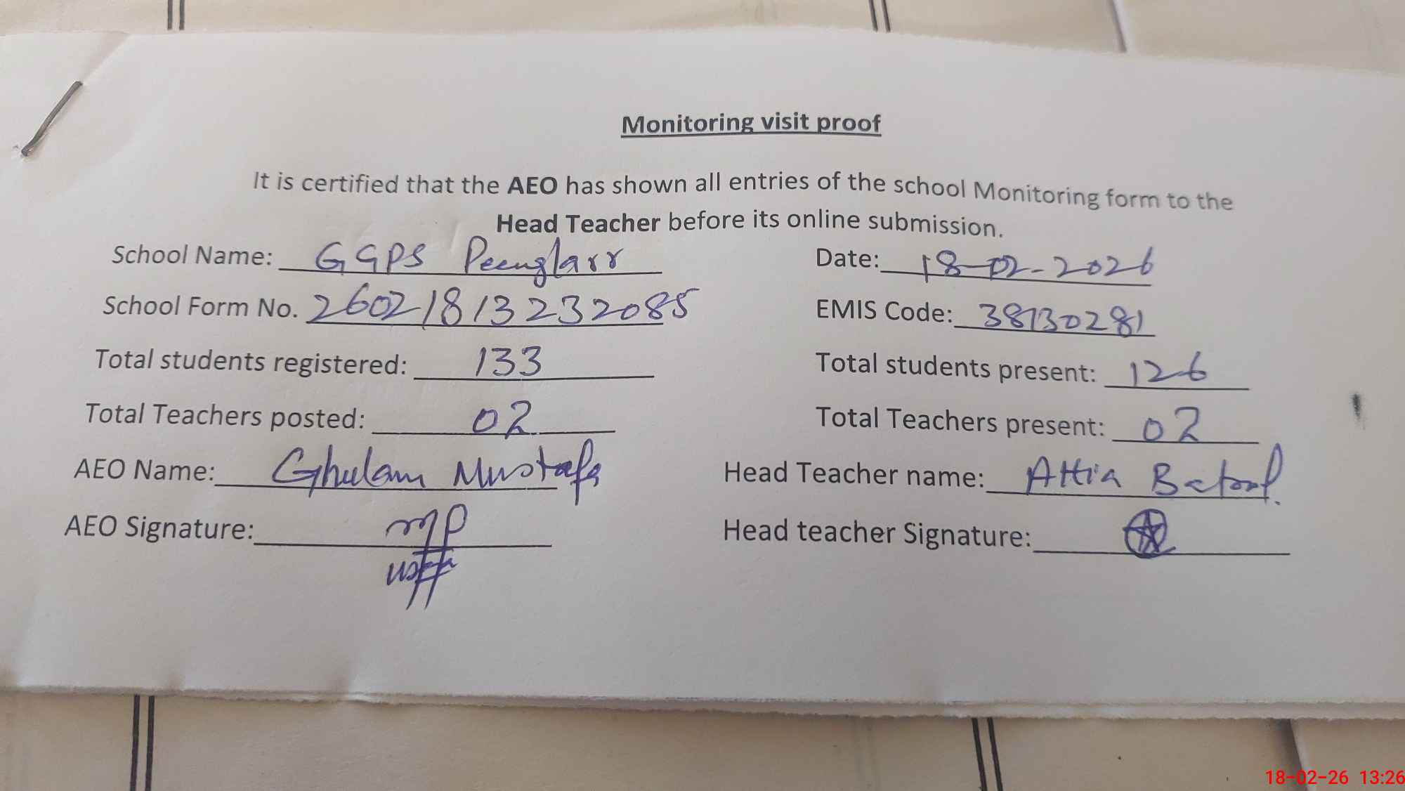 | EMIS Code: 38130281 | Name of School: GGPS PEENG LAR | |||