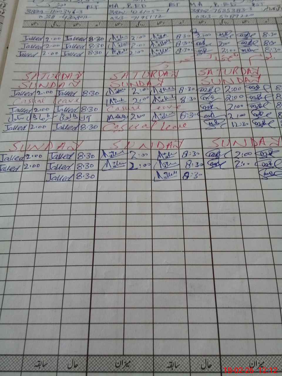 | CNIC | Full Name | Designation | R/C | Absence During Last Calender Month |