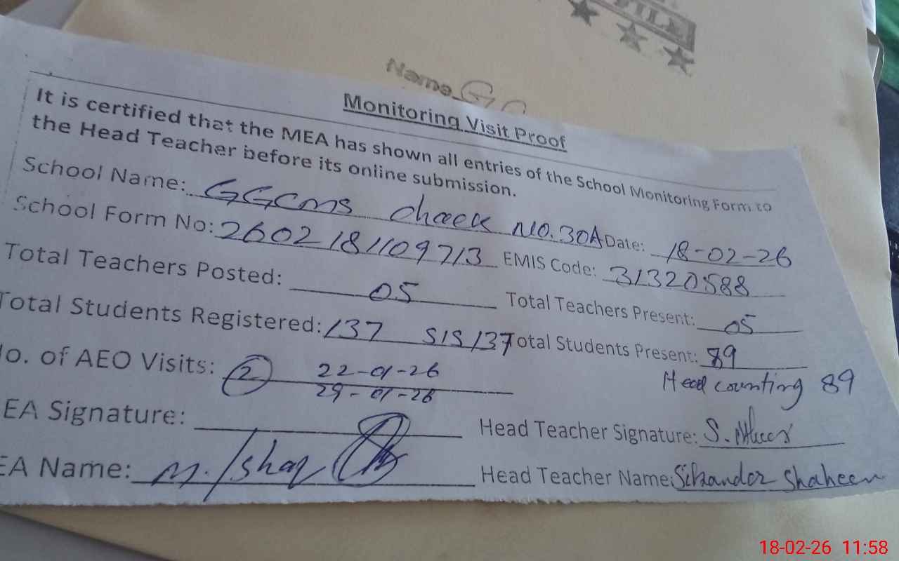 | EMIS Code: 31320588 | Name of School: GGCMS CHAK NO.30/A | |||