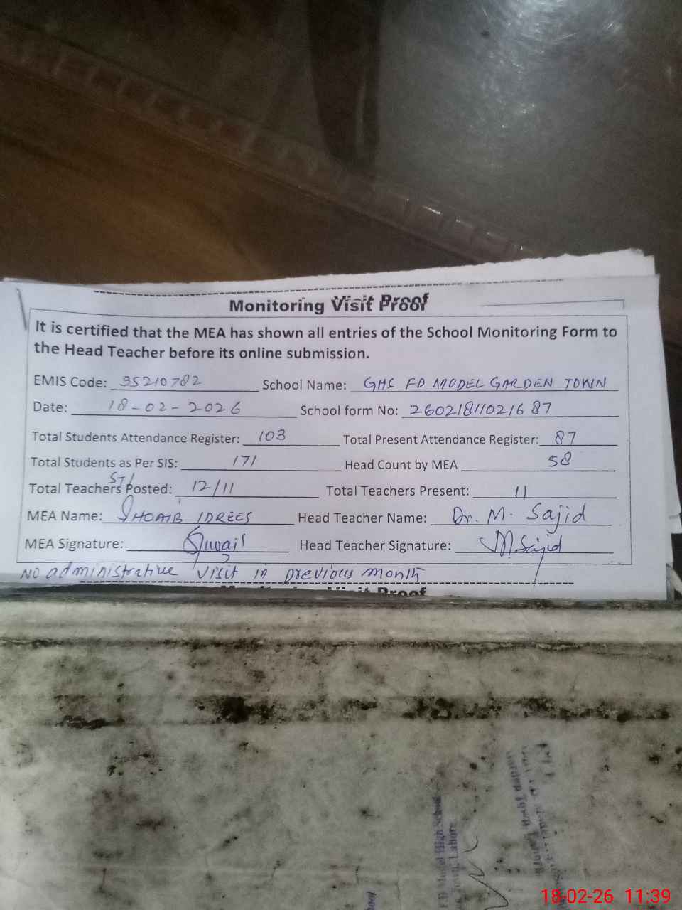 | EMIS Code: 35210782 | Name of School: GHS F.D. MODEL GARDEN TOWN | |||