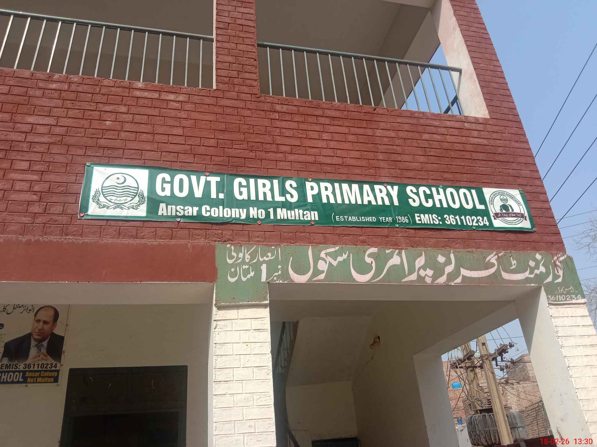 | EMIS Code: 36110234 | Name of School: GGPS ANSAR COLONY NO.1 MULTAN | |||