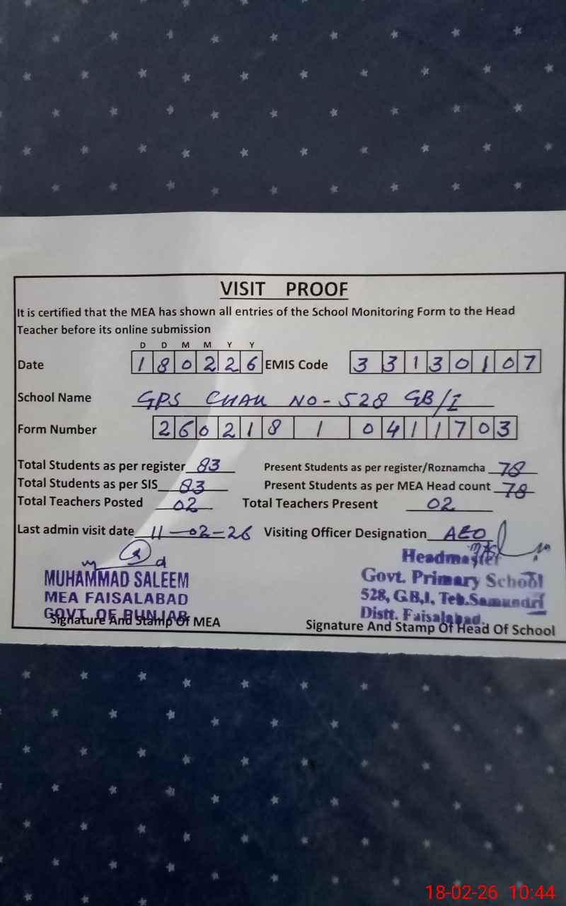 | Attendance Register | Head Teacher | MEA with School | Visit Proof |